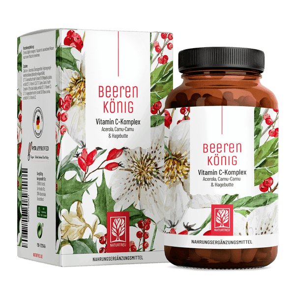 nDer Beerenkönig Vitamin C-Komplex vereint vier sorgfältig ausgewählte Vitamin C-Quellen. Er wurde speziell entwickelt, um Ihr Immunsystem und Ihre Haut gezielt zu unterstützen. Zudem bietet er effektiven Schutz vor oxidativem Stress.